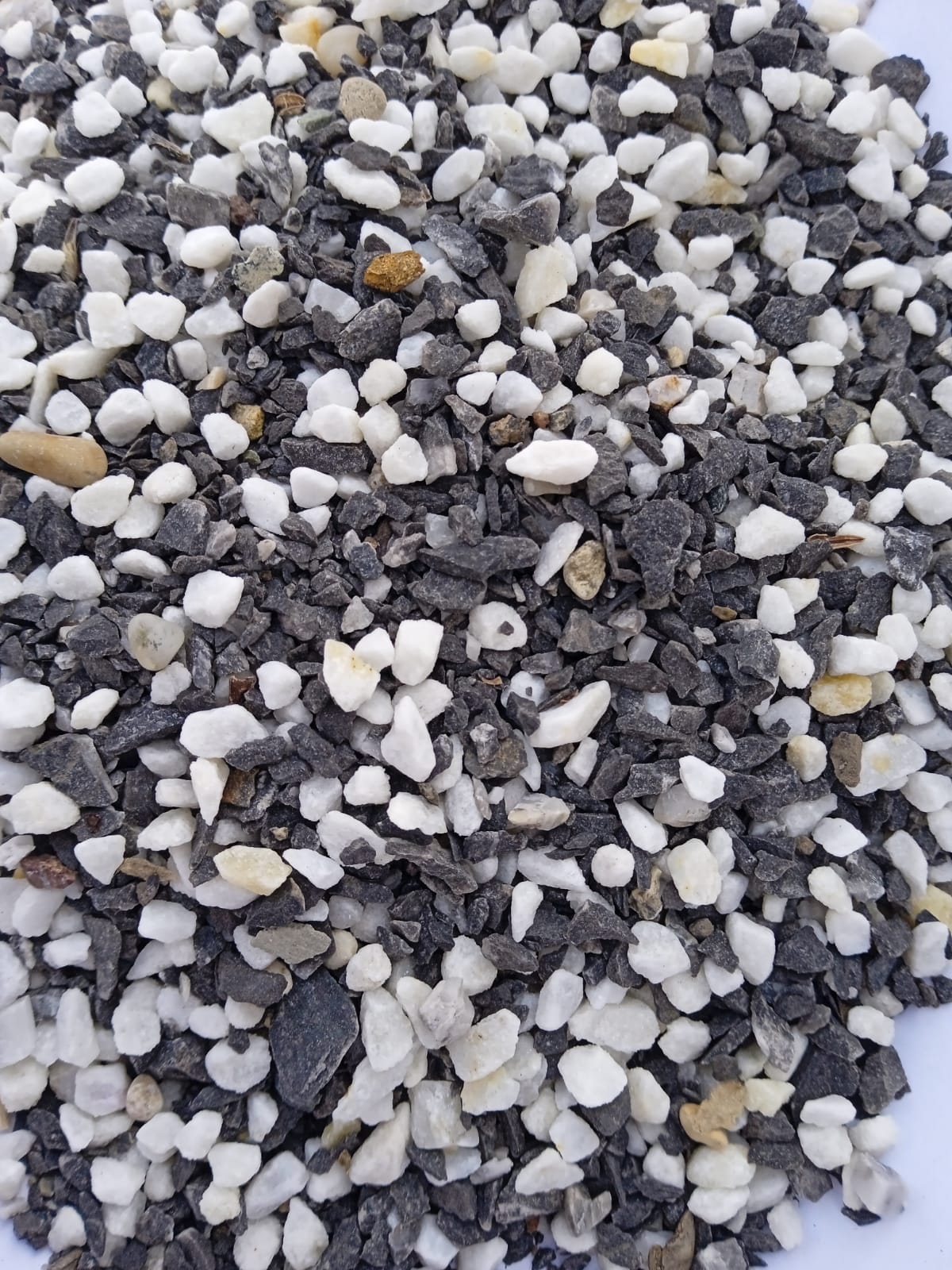 Kamenclub.ru: мраморная крошка (щебень галтованный микс:: белый-черный) фр.5-10 мм купить в Луганске - заказать природный камень по низким ценам оптом с доставкой от производителя - kamenclub.ru