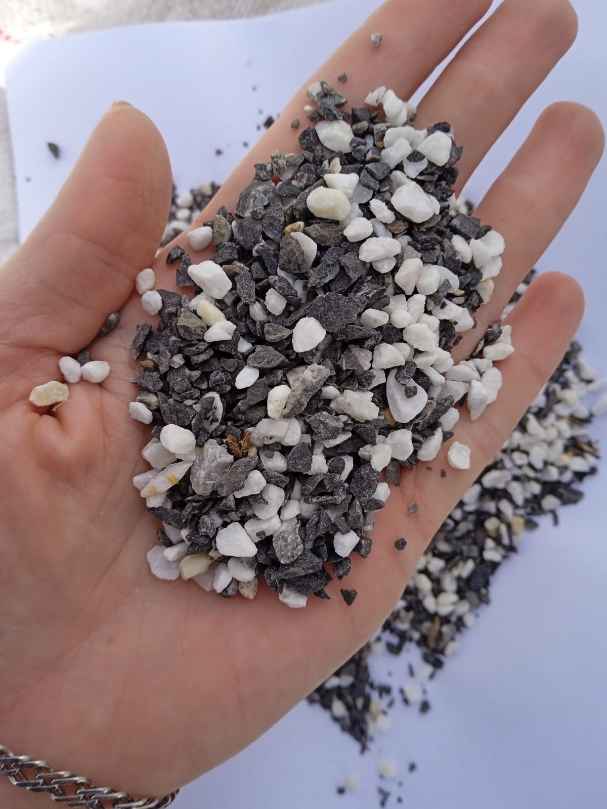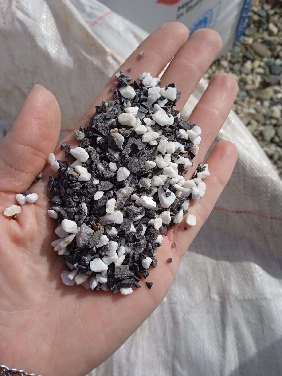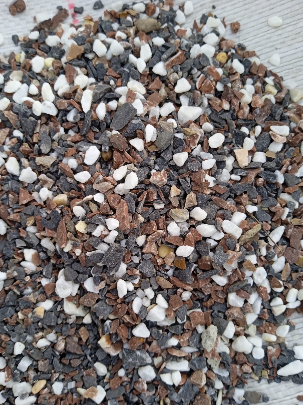 Kamenclub.ru: мраморная крошка (щебень галтованный микс:белый-черный-розовый-медовый) фр.5-10 мм. купить в Луганске - заказать природный камень по низким ценам оптом с доставкой от производителя - kamenclub.ru